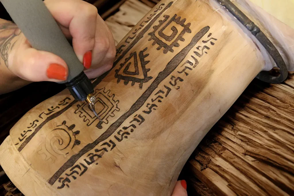 Ostatnio miałam okazję podjąć się wyjątkowego wyzwania – zdobienia korpusu bębna z orzecha włoskiego.Dla mojego znajomego wypaliłam pirografem etniczny wzór ...